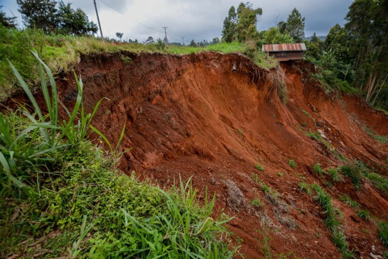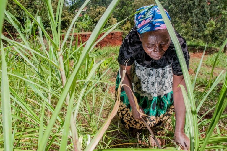 Picha ya bango: Mkulima Rachael Njeri ameanzisha mistari ya malisho shambani kwake, hatua inayosaidia kuzuia mmomonyoko wa udongo huku ikiwapa ng’ombe wake chakula. Picha na Georgina Smith/CIAT kupitia Flickr (CC BY-NC-SA 2.0).