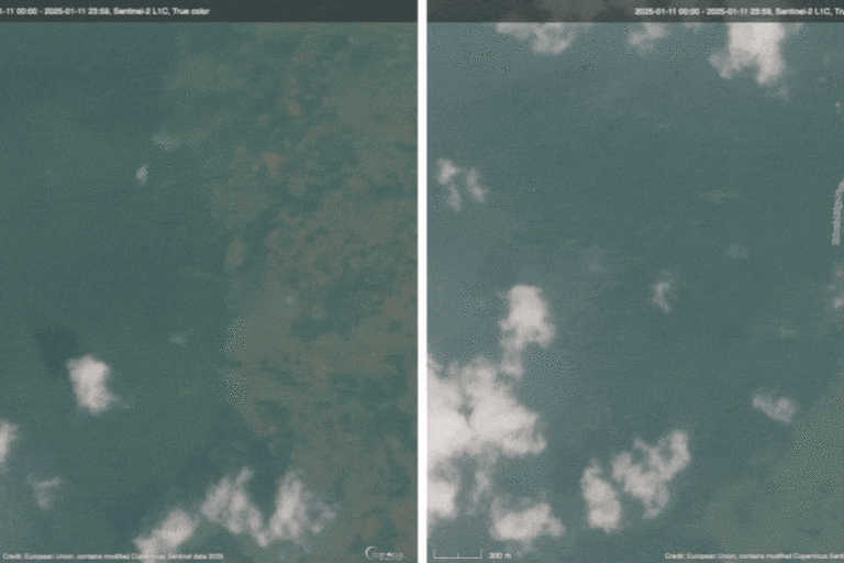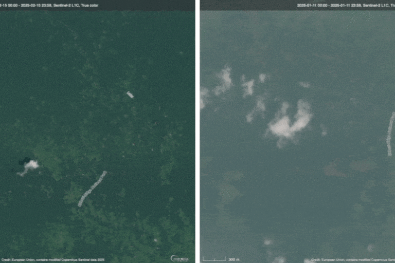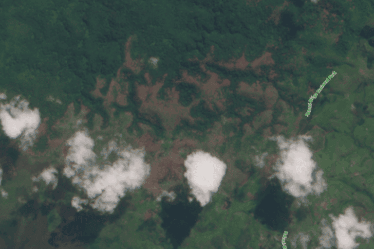 Katika Kahuzi-Biega, picha za satelaiti kutoka Copernicus, kipengele cha uchunguzi wa Dunia cha mpango wa anga za juu wa Umoja wa Ulaya, zinaonyesha kupungua kwa kasi kwa misitu kati ya Januari na Julai 2025. Maeneo yaliyokuwa ya kijani kibichi miezi sita iliyopita, yakiwa yamefunikwa na msitu mnene, wa msingi, sasa yanaonyesha mabaka ya ardhi tupu. Mongabay ilibaini pia upanuzi wa upotevu wa misitu katika maeneo mengi yanayojulikana, kama vile ncha ya kaskazini ya sekta ya nyanda za juu, upotevu wa miti unaovuja kutoka kwenye mpaka hadi kwenye hifadhi, na maeneo mapya katika eneo la Kabare na karibu na kijiji cha Muhonga, ambapo ukataji miti ulikuwa umesitishwa hapo awali mwaka 2019.